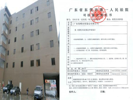 東莞市第一人民法院東城主山大井頭工業(yè)區(qū)房屋司法鑒定