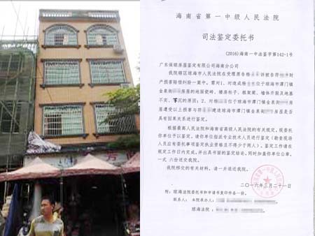 海南省第一中級人民法院相鄰房屋施工受損司法鑒定
