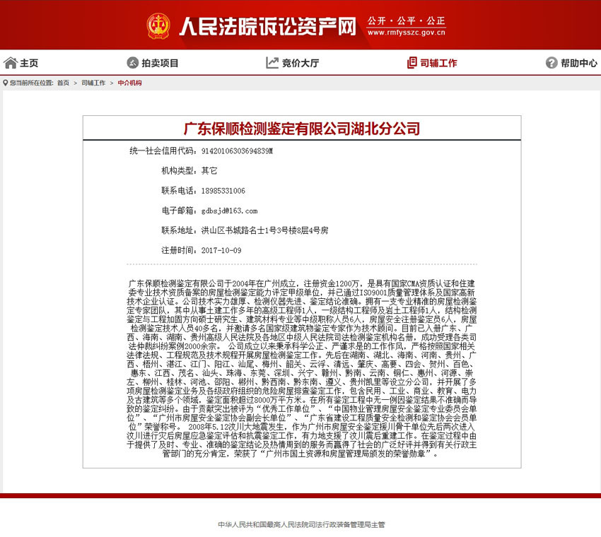 根據最高人民法院《對外委托鑒定、評估、拍賣等工作管理規定》(法辦發[2007]5號)的相關規定,現決定公告自愿報名,經省高、中級法院審核通過的司法委托鑒定機構名單,自2018年1月1日起啟用,廣東保順檢測鑒定有限公司作為全省各級人民法院司法委托鑒定的備選機構。