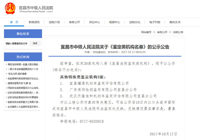 根據(jù)最高人民法院《對外委托鑒定、評估、拍賣等工作管理規(guī)定》(法辦發(fā)[2007]5號)的相關(guān)規(guī)定,現(xiàn)決定公告自愿報名,經(jīng)省高、中級法院審核通過的司法委托鑒定機構(gòu)名單,自2018年1月1日起啟用,廣東保順檢測鑒定有限公司作為全省各級人民法院司法委托鑒定的備選機構(gòu)。