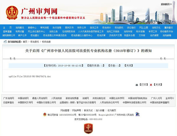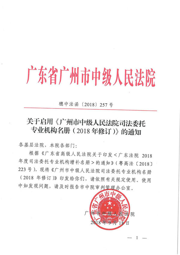 關于啟用《廣州市中級人民法院司法委托專業機構名冊(2018年修訂)》的通知