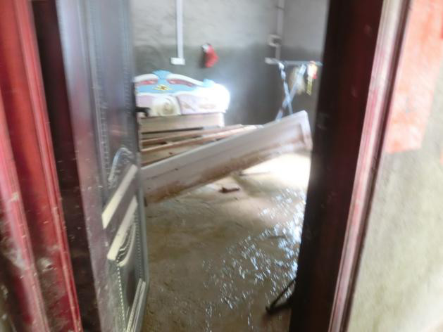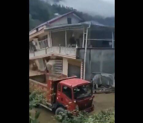 1,因特大暴雨,河水改道,沖毀屋主家門前馬路,導(dǎo)致新房倒塌。
