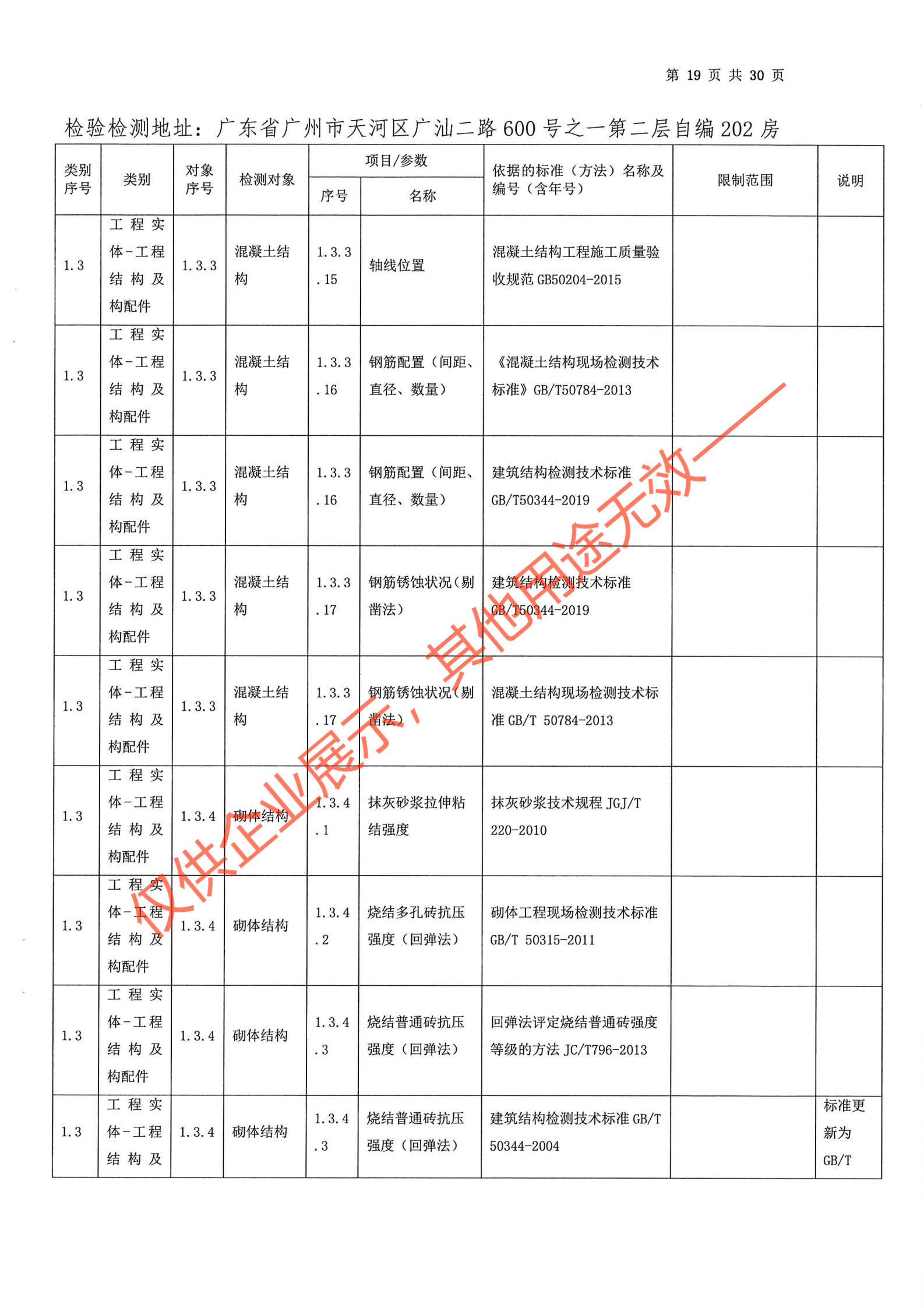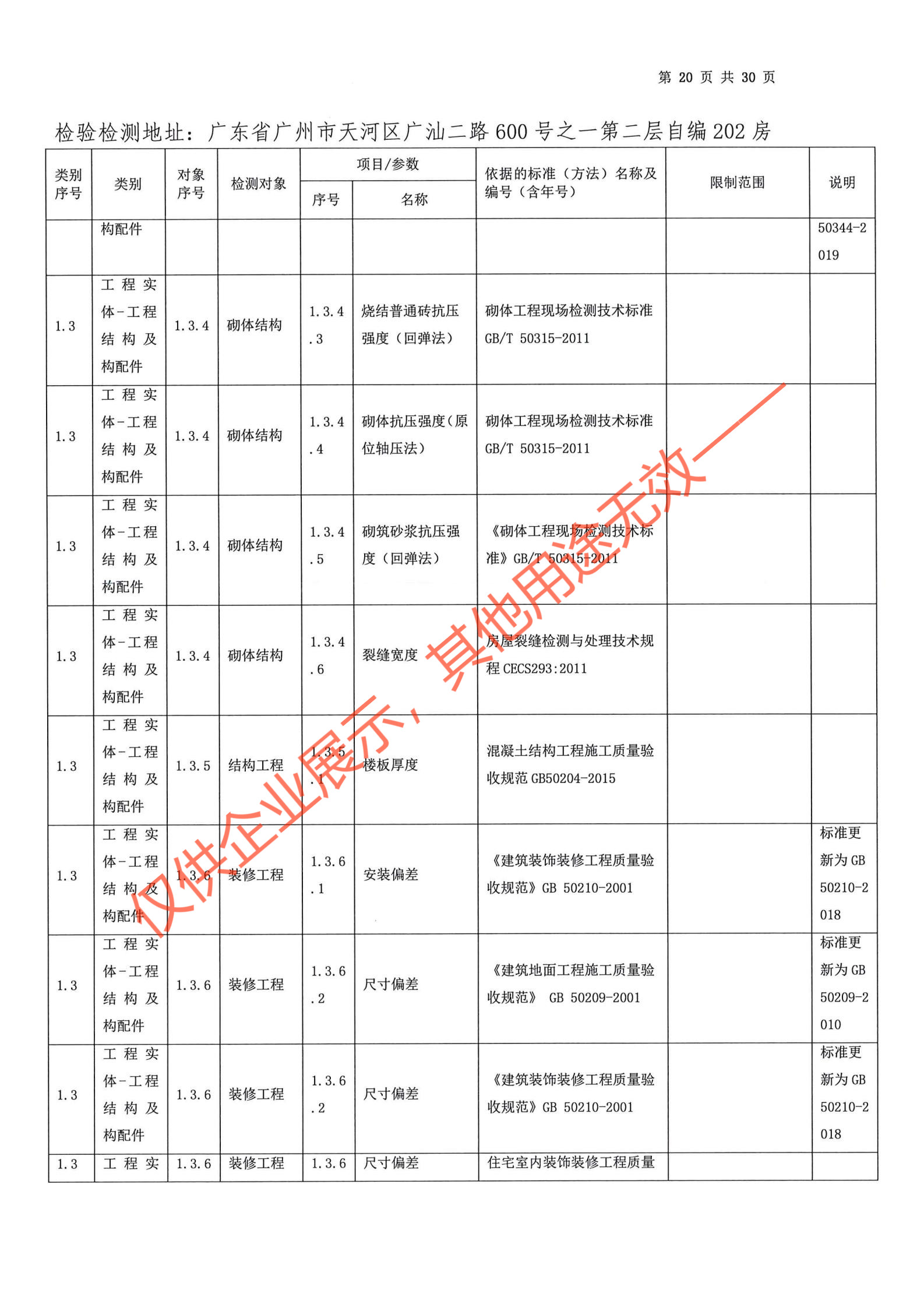 CMA資質認定計量認證證書新擴項檢測內容如下(圖):
