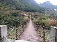 古郎景區新郎橋位于古藺縣東新鎮李家寨村。橋梁形式為吊索橋,橋面凈寬2.0m;橋梁跨徑70.0m。該橋概貌如照片1.1.1~1.1.2。